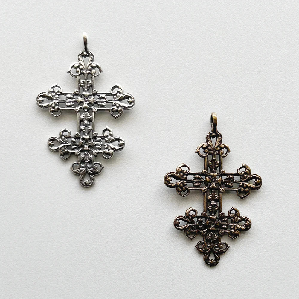 1 1/2" Cross of Lorraine Filigree Pendant Antique Model CR1271