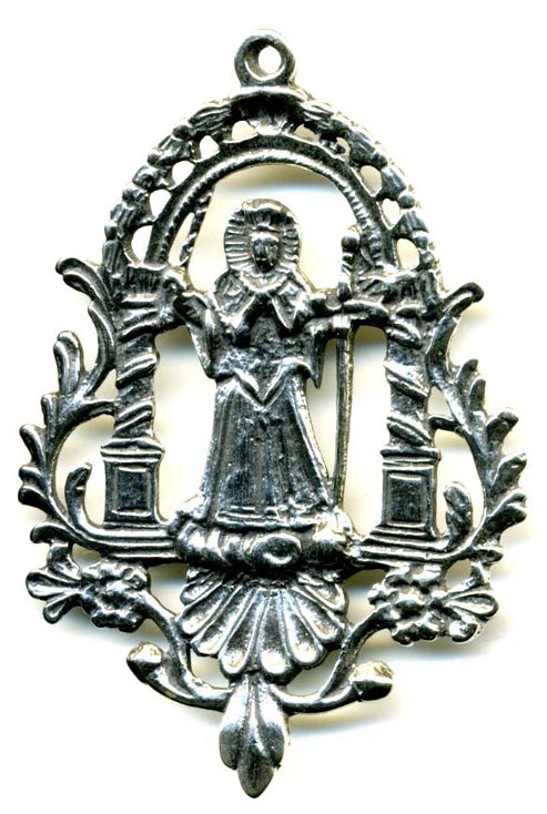 This San Fernando medal is a striking and intricate piece, measuring 2 3/4 inches (approximately 70 mm) in height. It is an exact replica of an antique or vintage medal, faithfully recreated to preserve its historic charm and devotional significance. Available in your choice of sterling silver or gold bronze, this medal is a beautiful tribute to classic craftsmanship and sacred heritage.